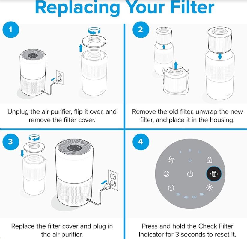 Druhou vrstvou je HEPA filtr H13. To odlišuje Levoit od konkurence, protože filtr HEPA H13 je mnohem kvalitnější a spolehlivější než běžně používané HEPA H11. Tu se odfiltrují jemné prachové částice, plíseň, bakterie, pyl, kouřové částice, roztoče a srst.
