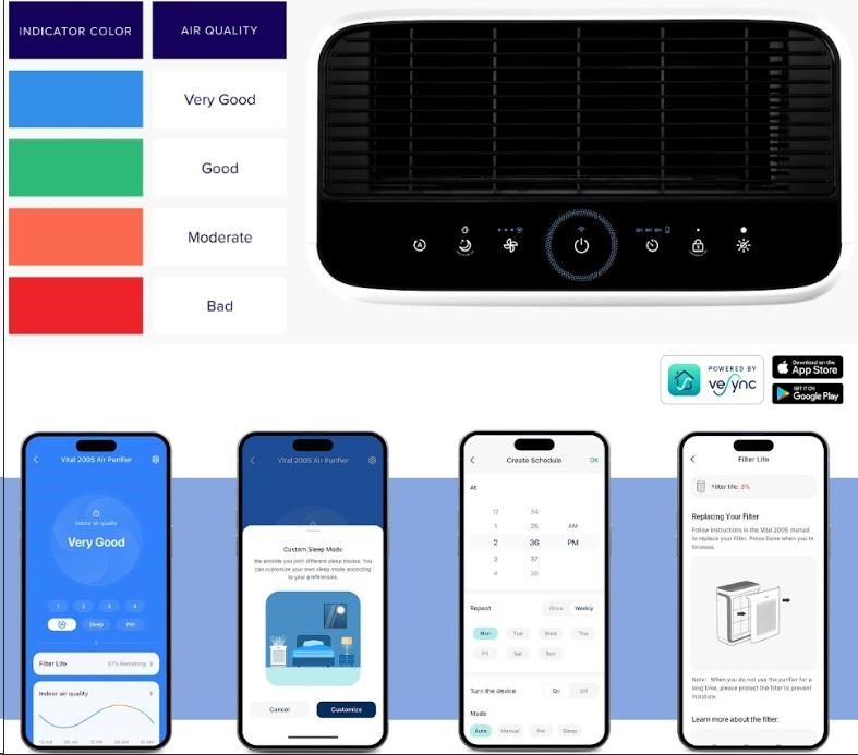 Chcete mít doma čistý vzduch jako prevenci před onemocněním horních cest dýchacích nebo jste alergik či astmatik? Chytrá čistička Levoit Vital 100S díky vysoce kvalitní 3 vrstvé filtraci s filtrem HEPA H13 a omývatelným předfiltrem odstraní až 99,97% škodlivých látek a nečistot, které by jste jinak dýchali. Čistička Levoit Vital 100S je certifikována pro alergiky a disponuje výkonem 243 m3/h CAD při 32W. Díky energeticky nenáročnému provozu získala ocenění Energy Star. Ovládaní čističky vzduchu je vskutku jednoduché přímo na displeji nebo se nabízí ovládání přes aplikaci na chytrých zařízeních Android nebo Apple (iOS). Levoit Vital 100S je vybaven senzorem snímaní kvality vzduchu na něhož základě umí sám chytře upravovat výkon čištění.