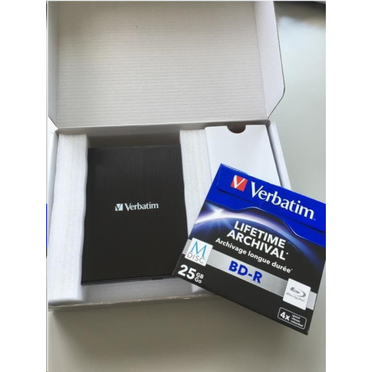 BAZAR - VERBATIM externí mechanika Slimline Blu-ray Rewriter USB 3.0 Zdarma BR Disc 25GB (CD DVD BD Mdisc) +NERO - Poško