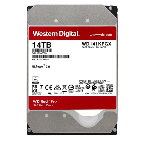 BAZAR - WD RED Pro NAS WD142KFGX 14TB, SATA III 3.5", 512MB 7200RPM, 255MB/s, CMR Rozbaleno