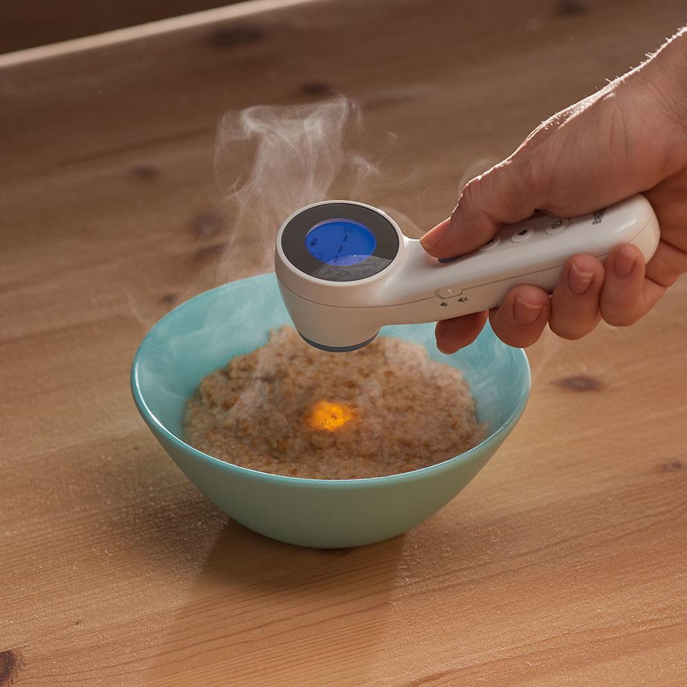 Bezdotykový + dotykový teploměr s přesností Age Precision. Patentovaný teploměr využívá technologii pro snadné, bezdotykové a neuvěřitelně přesné měření teploty. Chcete-li provést měření v dotykovém režimu, umístěte teploměr mezi obočí na čelo. V bezdotykovém režimu držte teploměr mezi obočím přibližně 2 cm před čelem dítěte. Měření je tedy bez stresu a lze jej provést bez rizika, že dítě vzbudíte. Kromě toho lze použít tichý režim, takže můžete měřit teplotu dítěte téměř neslyšně. Kromě toho můžete pomocí režimu Jídlo a tekutiny snadno měřit teplotu jídla, pití nebo vody ve vaně vašeho dítěte. Poznámka: Uživatel by měl mezi opakovanými měřeními u téže osoby počítat s přiměřeným časovým odstupem. Pro čištění vždy otřete vlhkým hadříkem a poté otřete suchým hadříkem. Nikdy nepoužívejte antibakteriální čisticí prostředky a utěrky, protože mohou přístroj nenávratně poškodit.