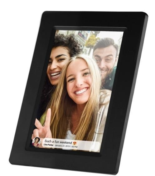 https://reflecta.de/ WiFi digitální fotorámeček s úhlopříčkou 7", rozlišení 1024x600px, 16:9 IPS, přehrávání JPEG/MP3/Video, 8GB interní paněť, aplikace FRAMEO (Android/iOS, FREE) pro zasílání obrázků a videí z telefonu, G-senzor pro h/v pozici, micro SDHC slot, micro USB, černý. WLAN modul 802.11 b/g/n, opěrka na stůl, jednoduchá obsluha a nastavení pomocí bezplatné aplikace FRAMEO, ideální pro aktualizaci obsahu a nastavení rámečku z telefonu doma i na cestách, možnost horizontálního i vertikálního provozu, vnitřní paměť pro až 999 obrázků, maximální doba pro video 15s, , micro SD karty do 32GB. Rozměry 195x126x17mm, hmotnost 306g, síťový zdroj 5V/2A..