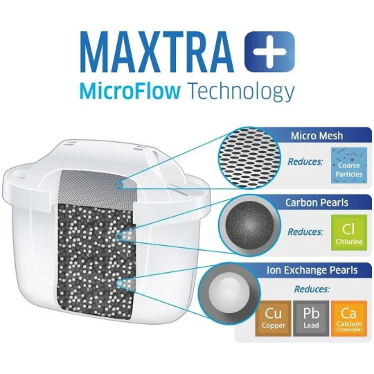 Používejte a pijte stále tu nejčistší vodu, co je jen možné. Díky používání filtrační konvice Brita budete mít téměř stoprocentní jistotu, že jste pro to udělali maximum. Aby vám i ona poskytovala stále stoprocentní výkon, je třeba měnit pravidelně její filtr, ideálně každé čtyři týdny. Brita Pack 6 MAXTRA pro PO 2024 je náhradní filtr, který je určený pro lokality s měkkou až středně tvrdou vodou. Balení obsahuje šest kusů filtru, který účinně redukuje vodní kámen, až o 50 % efektivněji v porovnání s verzí MX Pro PO. Eliminuje také látky, které ovlivňují chuť a aroma vody. Jsou jimi zejména chlór, olovo a měď. Filtrování vody zlepšuje také chuť kávy a čaje a chrání spotřebiče před usazováním vodního kamene. Jeden filtr dokáže nahradit až 150 ks balených plastových lahví, kapacita filtru je 150 l vody. Filtr má 2 výkonné super jemné síťky, které zadržují částice z potrubí, a to s dokonalou účinností. A aby také příroda zůstala co nejvíce ušetřena, je plastová skořápka filtru vyrobena z 50 % z bioplastů a všechny Brita filtry jsou recyklovatelné, proto je vracejte do recyklačních boxů.