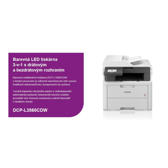 BROTHER multifunkce color LED DCP-L3560CDW - A4 26ppm 512MB 250listů USB WIFI LAN ADF50 duplex
