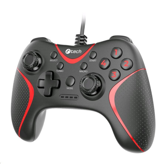 C-TECH gamepad Theon pro PC/PS3, 2 programovatelná makro tlačítka, 2x analog, X-input, vibrační, 1,8m kab