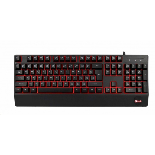 Klávesnice C-TECH KB-104BK, USB, 3 barvy podsvícení, černá, CZ/SK