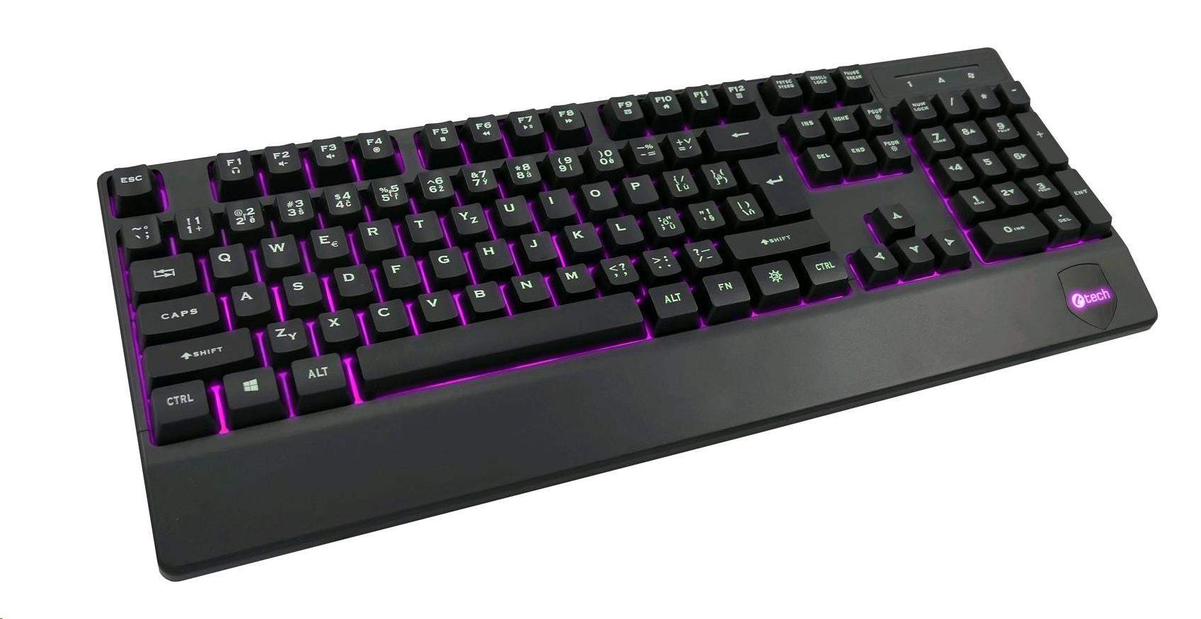 C-TECH Klávesnice KB-104BK, USB, 3 barvy podsvícení, černá, CZ/SK