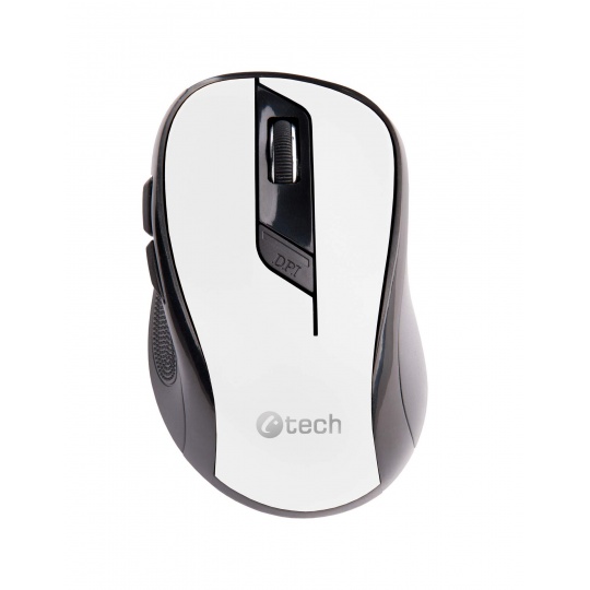 C-TECH myš WLM-02, černo-bílá, bezdrátová, 1600DPI, 6 tlačítek, USB nano receiver