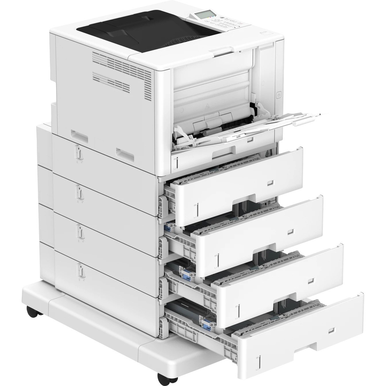 | Hmotnost | Hlavní jednotka: přibližně 37,3 kg Hlavní jednotka + 4× podavač papíru PF-L1 (Paper Feeder PF-L1) + plochý podstavec BA1 (Plain Pedestal BA1): přibližně 104 kg |