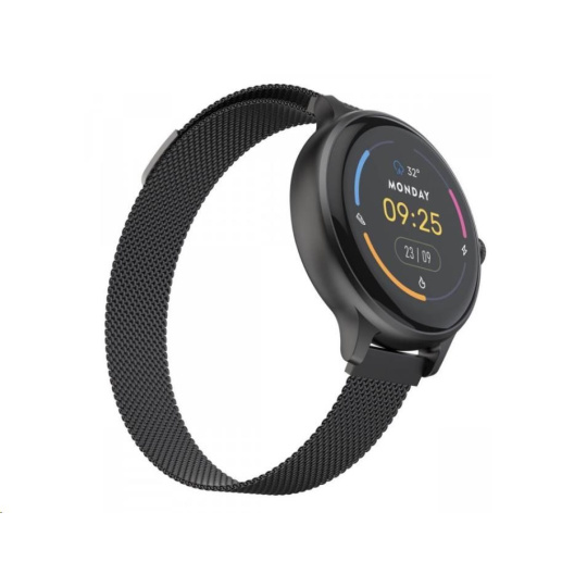 Luxusní fitness hodinky CARNEO HERO mini HR+ s Milánským, kovovým řemínkem s barevným Super HD AMOLED displejem. Monitorují vaši denní aktivitu, výšku stresu a lze je spárovat s mobilním telefonem, díky čemuž Vás upozorní na příchozí hovor či SMS. Jejich dokonalé, minimalistické kovové tělo s jednoduchými křivkami je tak návykové, že je nebudete chtít po prvním nošení sundat z ruky. Hodinky Vám umožňují vyřídit telefonický hovor přes zabudovaný mikrofon a reproduktor, pokud budete v dosahu spárovaného telefonu (vzdálenost až 10 metrů).