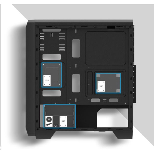 | Fan mount locations | Front: 120mm x 3 Top: 120mm x 2 Rear: 120mm x 1 Bottom: 120mm x 2 |