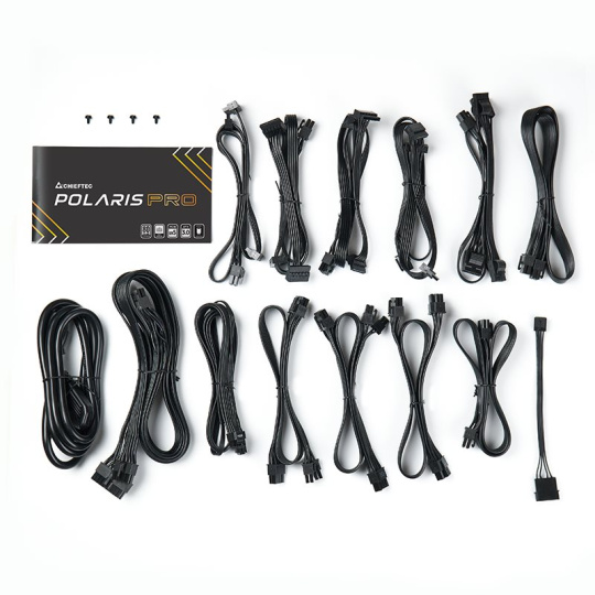 Řada CHIEFTEC Polaris Pro nabízí pokročilé řízení teploty s režimem Zero RPM, který umožňuje optimální rovnováhu mezi tichostí při nízké spotřebě energie a ideálním chlazením s účinností certifikovanou 80 PLUS® PLATINUM. Řada Polaris Pro je navržena pro nejmodernější standard Intel ATX 3.0 s nativním konektorem PCIe GEN5. Řada Polaris Pro je postavena se 100% špičkovými japonskými kondenzátory pro dosažení bezprecedentní přísné regulace napětí a nižšího zvlnění a šumu pro maximalizaci výkonu vašeho systému a vynikající trvanlivost. Plně modulární správa kabelů zajišťuje čistou a pohodlnou konstrukci uvnitř jakéhokoli systému.