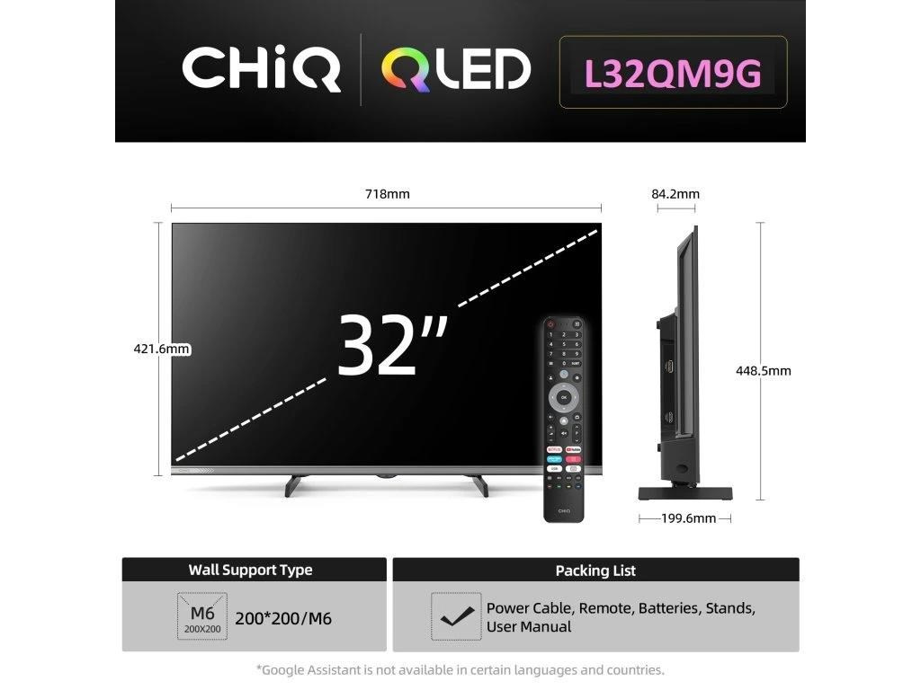 CHiQ L32QM9G TV 32", FHD, QLED, metalická bezrámečková, smart, Google TV, Dolby Audio, HDR, Chromecast