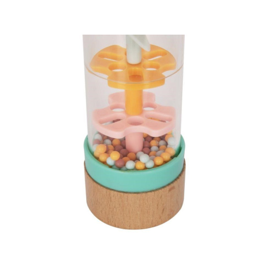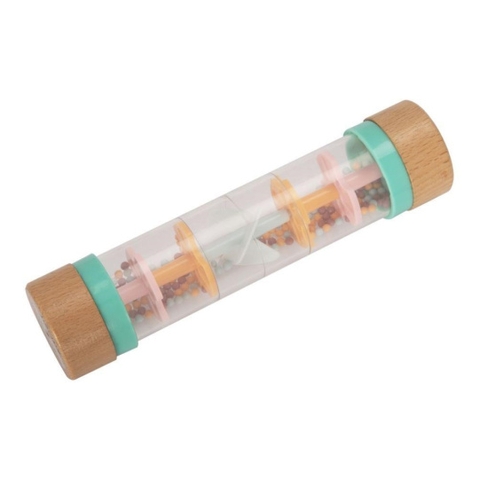 Chrastítko pro miminka v originálním designu, s průhlednou hlavní částí a barevnými korálky, láká miminka ke zkoumání a ke hře. Chrastítko Dešťové korálky se spoustou drobných korálků v jemných pastelových barvách vydává při každém pohybu příjemné zvuky. Při hře s chrastítkem miminka zdokonalují motorické dovednosti a stimulují smysly..