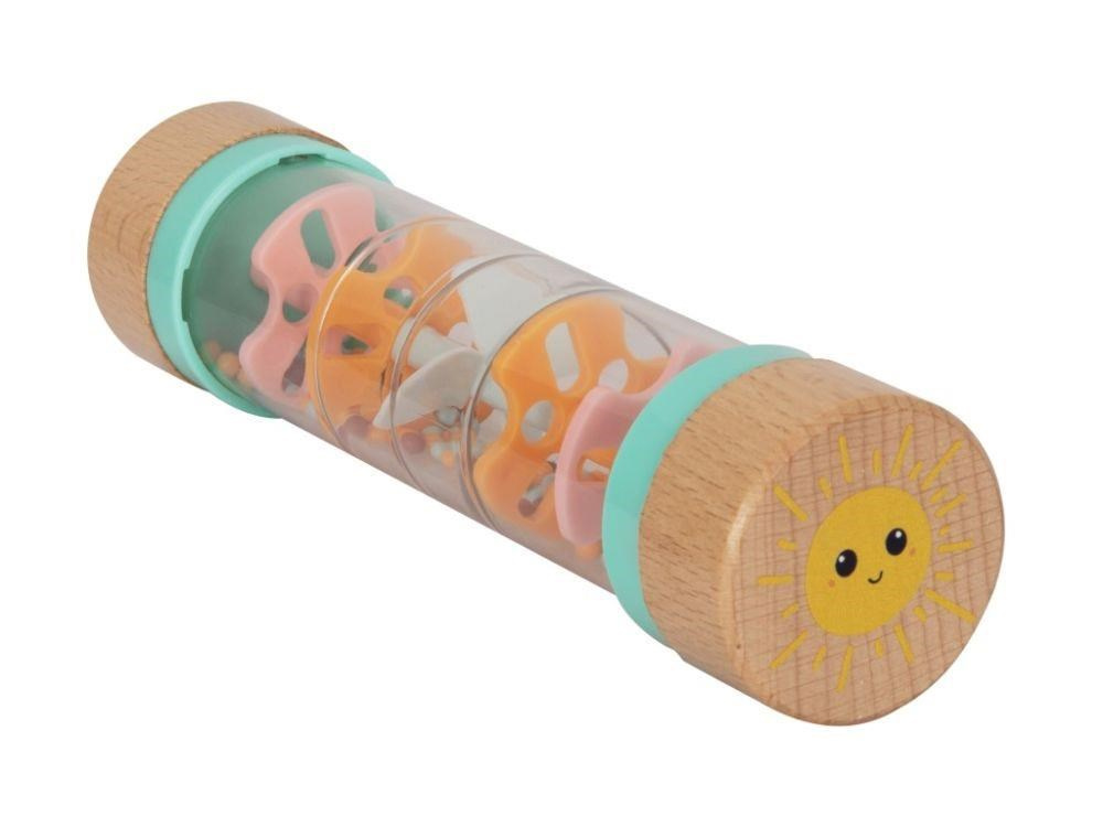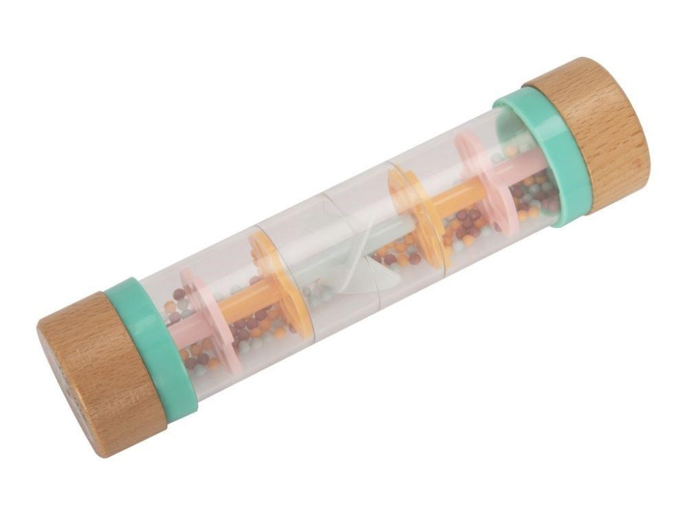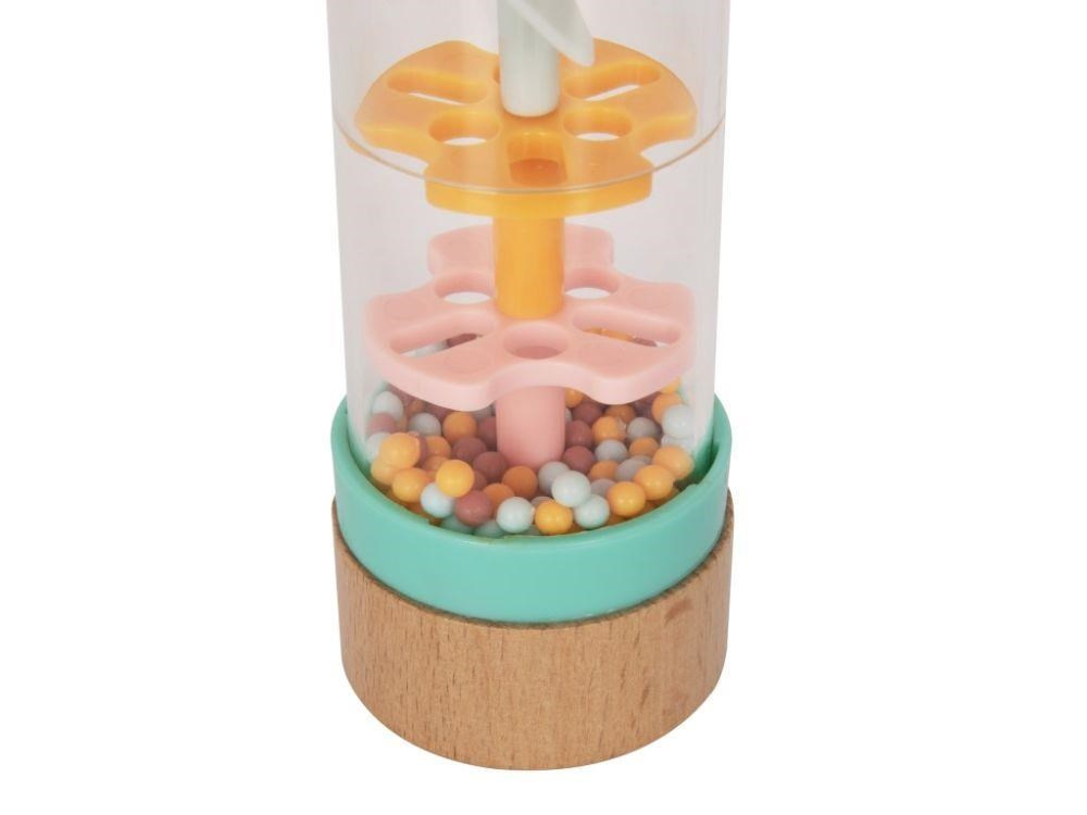 Chrastítko pro miminka v originálním designu, s průhlednou hlavní částí a barevnými korálky, láká miminka ke zkoumání a ke hře. Chrastítko Dešťové korálky se spoustou drobných korálků v jemných pastelových barvách vydává při každém pohybu příjemné zvuky. Při hře s chrastítkem miminka zdokonalují motorické dovednosti a stimulují smysly..