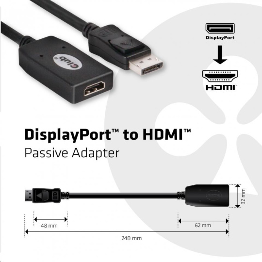 - Pasivní adaptér Club 3D DisplayPort ™ na HDMI ™