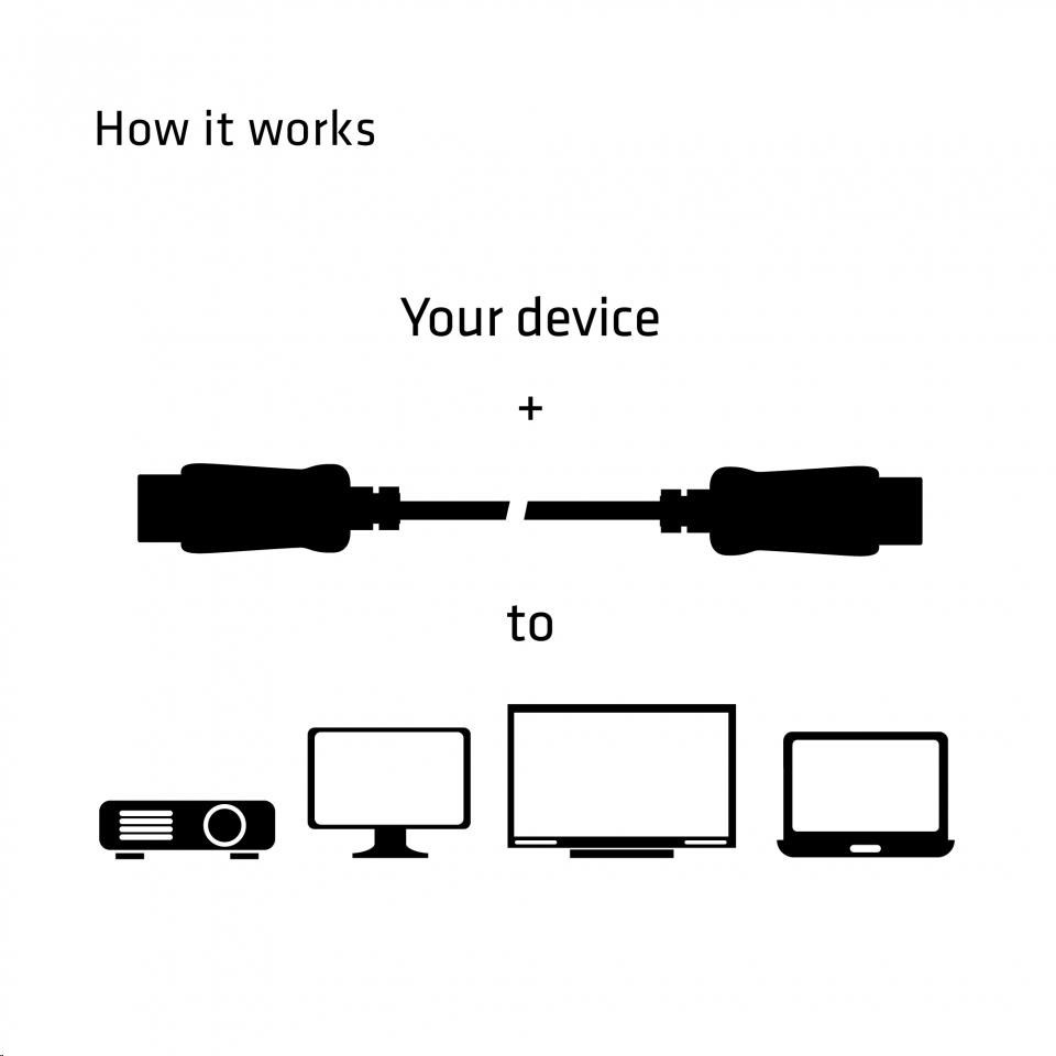 Kabel DisplayPort ™ Ver. 1.2 Vám umožní připojit herní PC nebo notebook s konektorem DisplayPort ™ k monitoru s vysokým rozlišením (až UHD) nebo k jinému zařízení s podporou DisplayPort ™. Obsahuje konektory vybavené zámky, které zajišťují bezpečné a spolehlivé připojení.