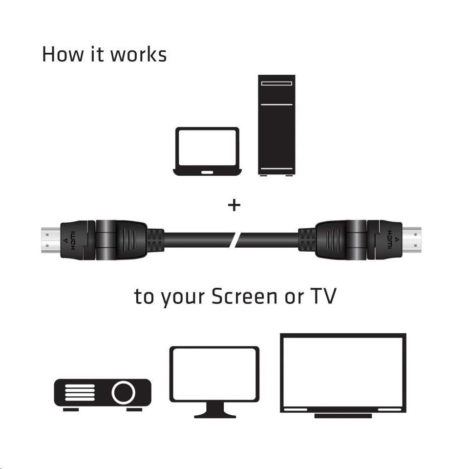 Club 3D HDMI ™ 2.0 4K60Hz UHD 360 ° rotační kabel může být zkroucený nebo otočený do prakticky libovolné polohy. Konektory Rotator mají středový kulový kloub, který umožňuje otáčení a ohýbání o 360 stupňů. Konstrukce kabelu zajišťuje integritu signálu v libovolné poloze a jeho flexibilita je ideální pro instalace v těsných / úzkých prostorech, kde jsou standardní konektory obtížně instalovatelné, aniž by musely ohýbat kabely ostrými úhly.