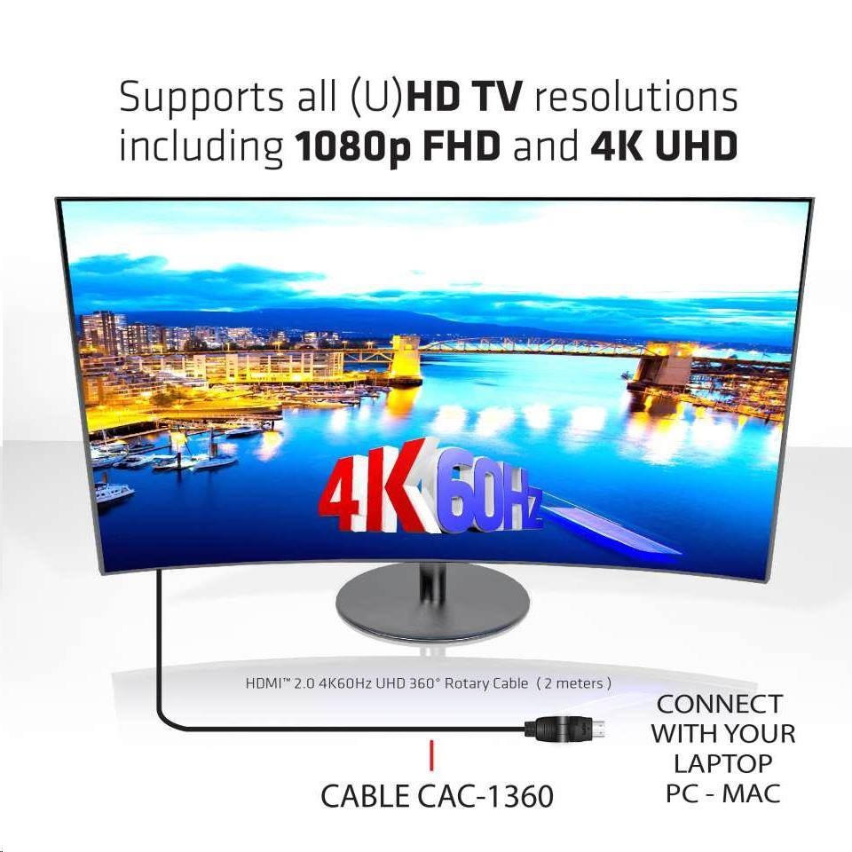 Club3D Kabel HDMI 2.0 4K60Hz UHD, 360 otočné konektory (M/M), 2m
