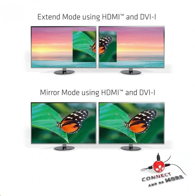 - Podporované maximální rozlišení 2048x1152p (nebo 1920x1200p) @ 60Hz a pro nastavení dvou obrazovek: 2 x 2048x1152p (nebo 1920x1200p) @ 60Hz