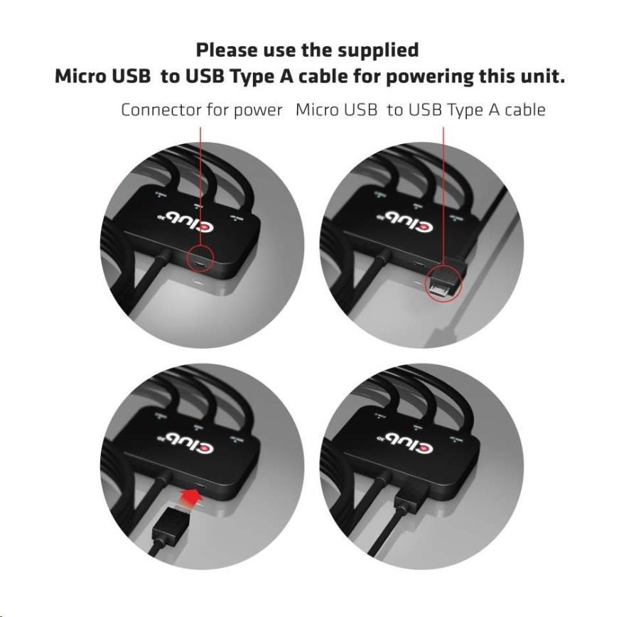 Please use one of our HDMI™, USB Type C and/or Mini DisplayPort™ (Extension) cables to connect from the adapter to your devices: In case you need assistance to choose the correct cable, please visit our website www.club-3d.com or feel free to mail us at support@club-3d.com and it will be our pleasure to assist you.