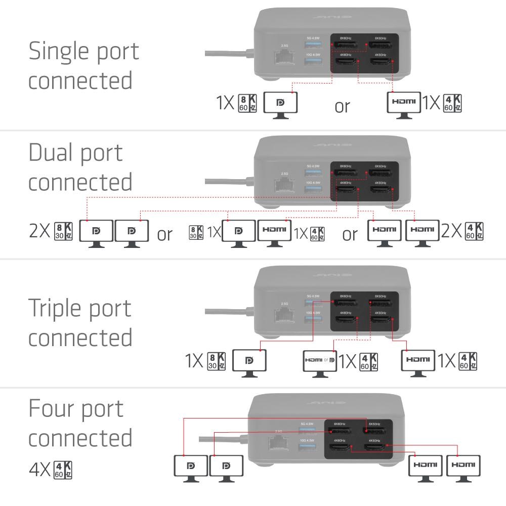 | Výstup | 1x USB-C PD 2x HDMI 2x DisplayPort 1x Ethernet 3x USB-A 2x USB-C 1x 3.5mm Jack |