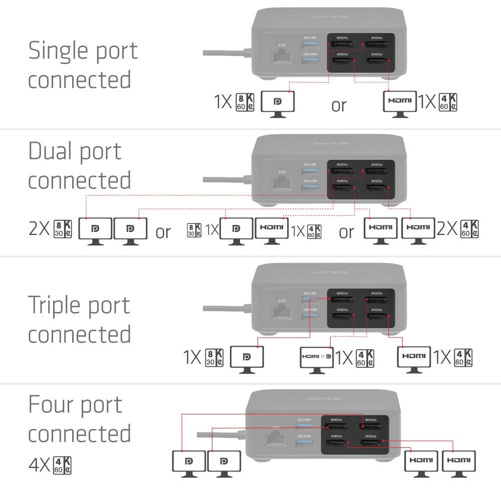 CSV-2542 je první dokovací stanice, která umožňuje připojení až čtyř 4K monitorů k jakémukoli zařízení se systémem Windows nebo Mac pouze prostřednictvím 10Gb/s USB rozhraní, a to i u modelů, které tuto funkci standardně nepodporují (např. MacBook Air).