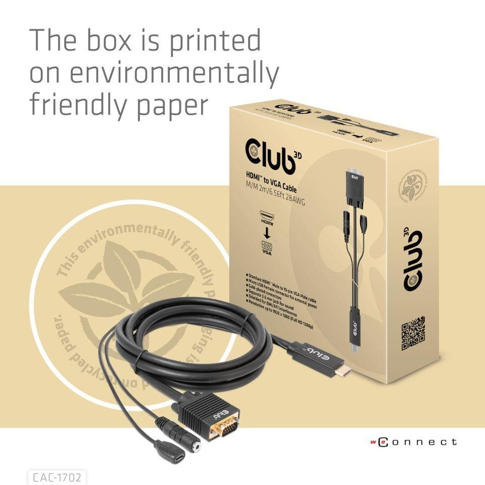 Club3D kabel HDMI na VGA, M/M, 28AWG, 2m