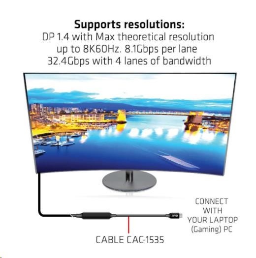 The Club 3D CAC-1535 is an USB Type C to USB Type C Bi-directional Active Cable with a Re-timer chipset for enhancing Video, Data and Power that reaches up to 5 meters / 16.40ft . For video its compatible with DP1.4 standards with a theoretical resolution of up to 8K@60Hz. For data it is compatible with USB3.2 Gen 2 with a maximum of 10Gbps of data transmission and for power it is capable of delivering a max of 60W (20V/3A) PD Charging.