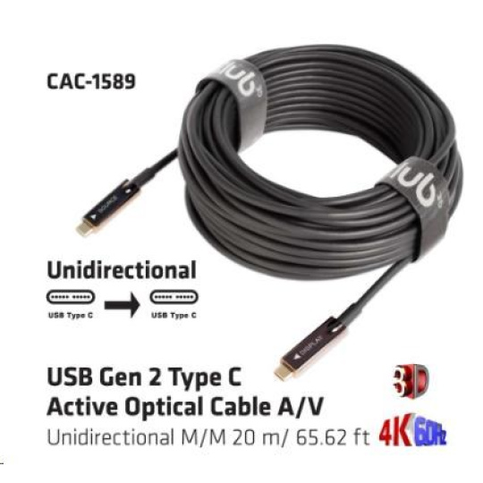 Club3D Kabel USB 3.2 typ C Gen2, aktivní, (M/M), 20m, optický, aktivní, unidirectional, A/V