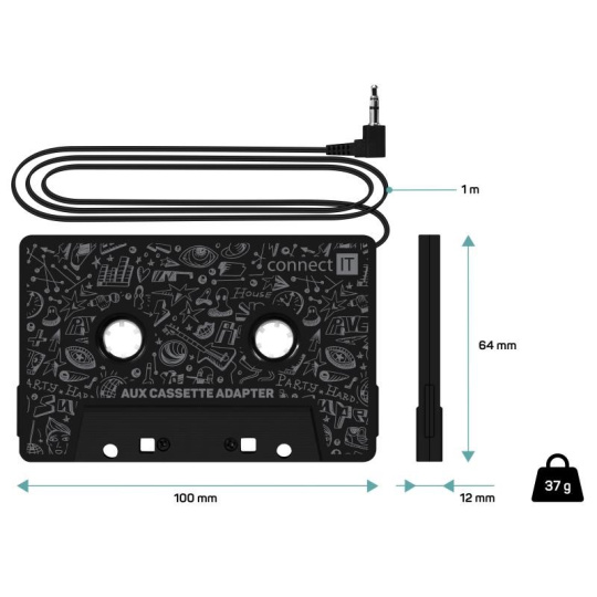 CONNECT IT AUX kazetový adaptér, 3,5 mm jack, černá