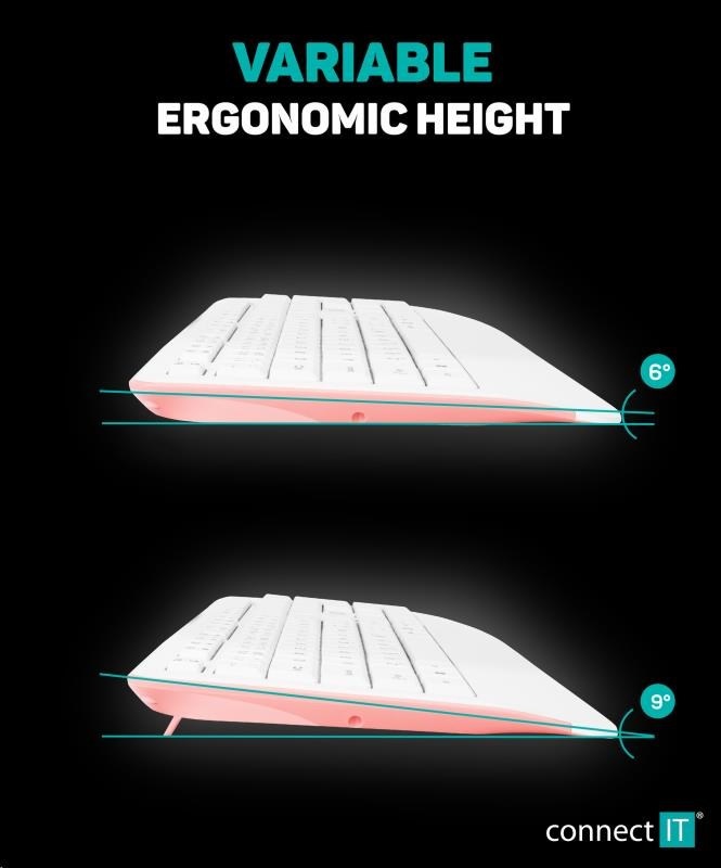 CONNECT IT Combo bezdrátová bílo-růžová klávesnice + myš, CZ + SK layout