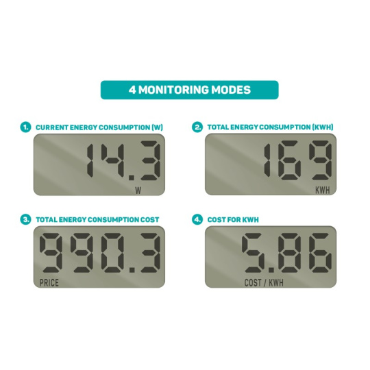 Měřič spotřeby elektrické energie dokáže vypočítat odpovídající finanční náklady a odhalit, který spotřebič odebírá nejvíce elektrické energie a jeho provoz je tedy nejnákladnější. Mezi další funkce měřiče patří měření okamžitého odebíraného výkonu. Tyto informace Vám mohou přispět ke snížení nákladů za elektrickou energii.