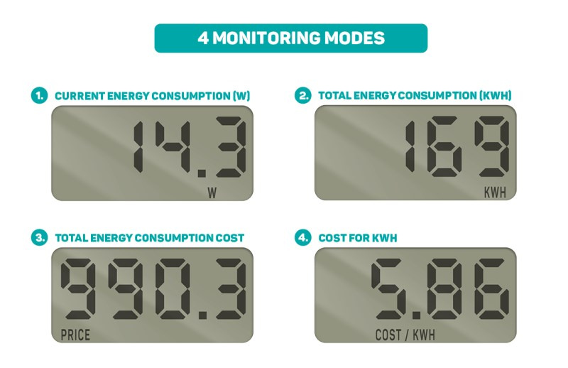 Měřič spotřeby elektrické energie dokáže vypočítat odpovídající finanční náklady a odhalit, který spotřebič odebírá nejvíce elektrické energie a jeho provoz je tedy nejnákladnější. Mezi další funkce měřiče patří měření okamžitého odebíraného výkonu. Tyto informace Vám mohou přispět ke snížení nákladů za elektrickou energii.