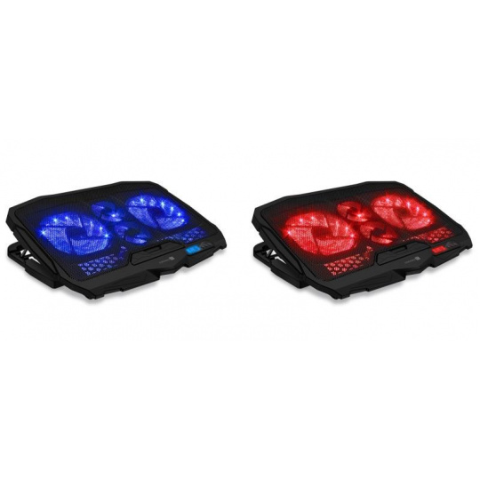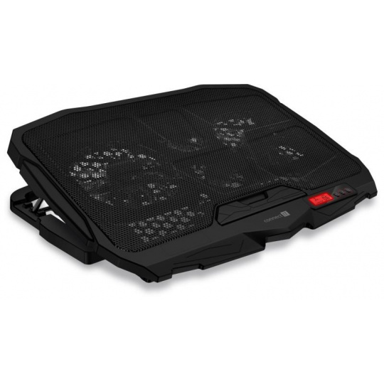 Chladicí podložka pod notebook se čtyřmi šestirychlostními ventilátory, digitálním displejem, výškovým polohováním ve 4 úrovních a dvěma USB porty. Podložka zajišťuje jak odvod tepla z notebooku a jeho ventilačních otvorů, tak i přímé ochlazování pláště notebooku díky cirkulaci chladného vzduchu a celkově tak zvyšuje výkon notebooku. Je plně kompatibilní s notebooky až do velikosti 15,6" a díky kompaktním rozměrům je předurčena jak pro práci doma a v kanceláři, tak i pro cestování a časté přenášení. Ultratichý chod 4 ventilátorů vás nebude rušit ani při nejnáročnější práci vyžadující maximální soustředění. Výšková polohovatelnost ve 4 různých stupních vám zajišťuje maximální pohodlí i při delších pracovních či herních sezeních.