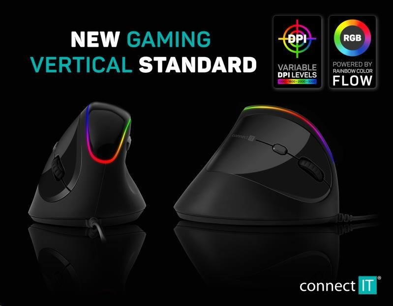 CONNECT IT GAME FOR HEALTH ergonomická vertikální myš, drátová, černá