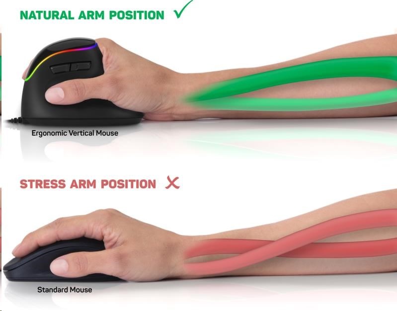 CONNECT IT GAME FOR HEALTH ergonomická vertikální myš, drátová, ČERNÁ