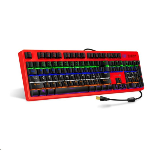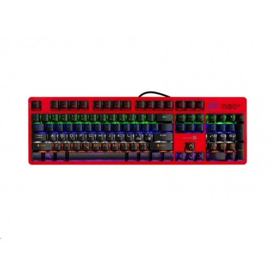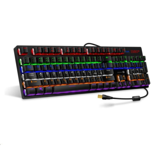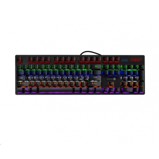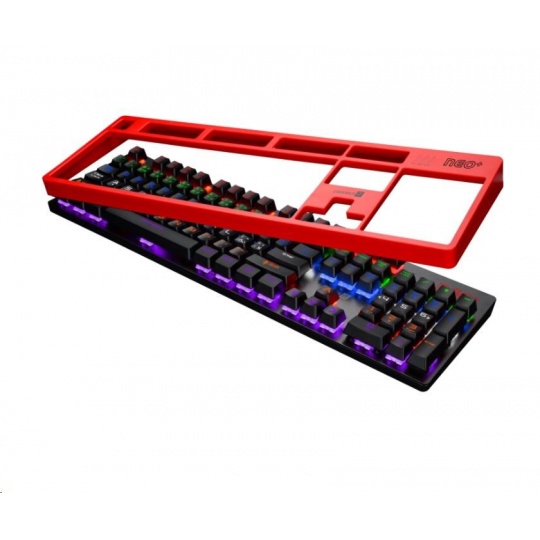 Profesionální mechanická klávesnice NEO+ series pro hráče počítačových her v českém a slovenském layoutu s celkem 22 módy barevného rainbow podsvícení a pětistupňovou regulací intenzity podsvícení. K dispozici je 12 multimediálních kláves.