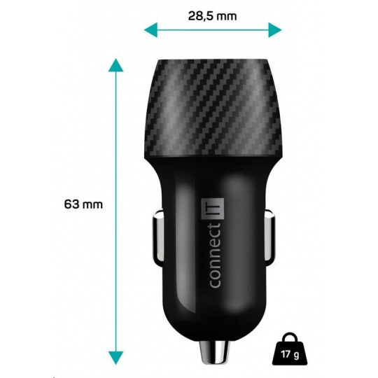 CONNECT IT InCarz QUICK CHARGE 3.0 nabíječka do auta, 1x USB-A, 3 A, carbon