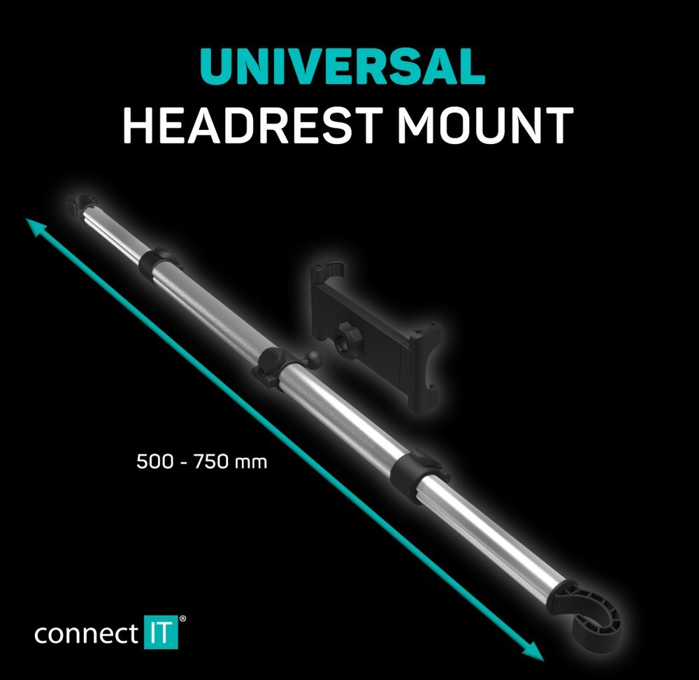 - Určený k instalaci na opěrku hlavy sedačky automobilu