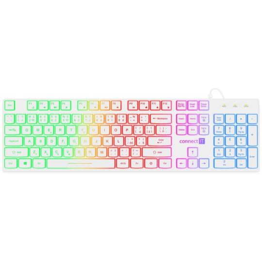 CONNECT IT kancelářská podsvícená klávesnice Chocolate RNBW, CZ + SK verze, bílá
