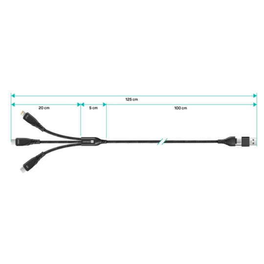CONNECT IT Nabíjecí kabel Wirez 6v1, USB-C/USB, Lightning + 2x USB-C, 1.25m, černá
