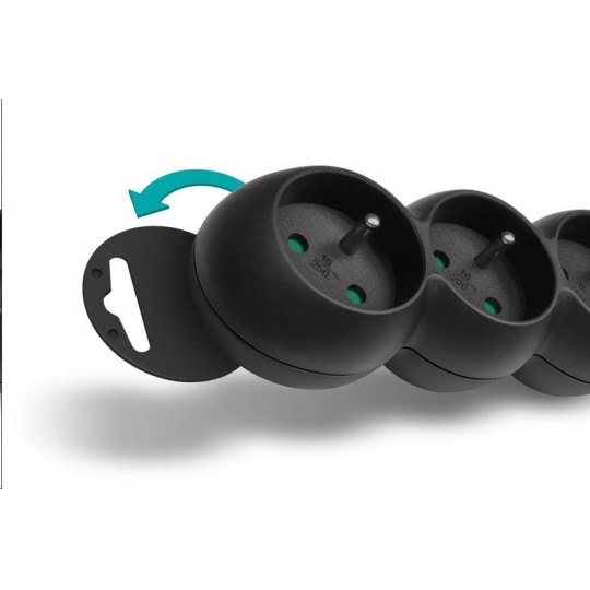 Prodlužovací kabelový přívod na 230V je vybaven hlavním síťovým vypínačem, který při vypnutí zcela odpojí od přívodu elektrické energie všechny zapojené spotřebiče najednou. Extra výbavou je dětská ochrana všech zásuvek – zásuvky jsou přístupné pouze v případě zasunutí obou vidlic najednou, nelze tedy zasunout jednotlivě např. pouze šroubovák nebo pletací jehlici. Díky pootočení zásuvek o 45° je možné používat i objemnější napájecí adaptéry nebo úhlové koncovky. Výsuvné očko v horní části zásuvkového modulu umožňuje zavěšení nebo pevnou instalaci na stěnu (s výhodou využijete např. v dílnách a garážích). Výrobek byl testován a certifikován v evropském testovacím centru a splňuje nejpřísnější bezpečnostní požadavky a nejnovější normy, takže umožňuje zapojení spotřebičů o celkovém příkonu až 2500 W.