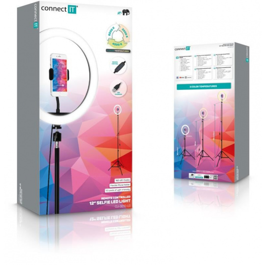 CONNECT IT Selfie12Ring kruhové 12" LED světlo + stativ 2,1 m