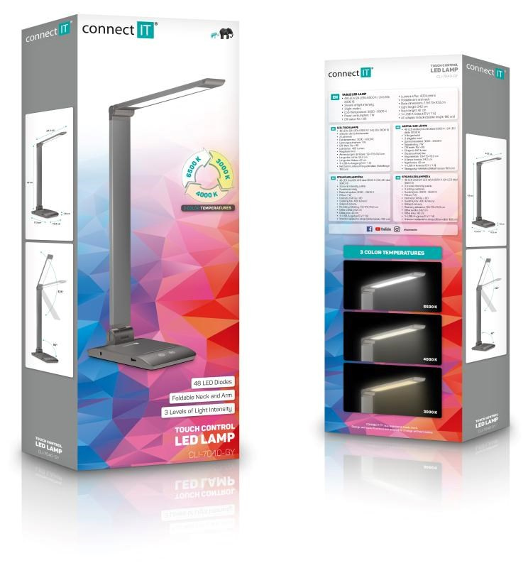 CONNECT IT Stolní LED lampa Bright, USB-A, šedá