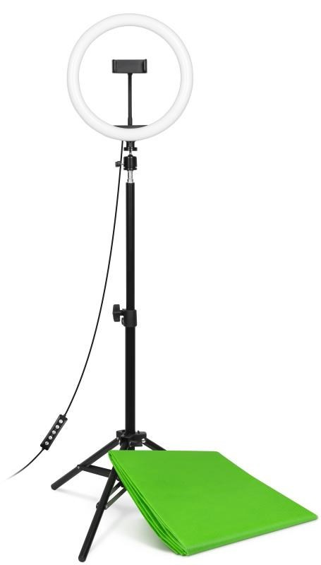 Chcete-li povznést vaše videa a fotky na vyšší úroveň, využijte přiložený green screen, díky kterému vaše tvorba zaujme unikátním pozadím a získá originální vibe. Absolutní svobodu v nastavení požadovaného úhlu garantuje úchyt světla pomocí kulové hlavy. Barevnou teplotu světla je možno nastavit od studené až po teplou ve třech úrovních. Držák mobilního telefonu umístěný na flexibilním husím krku umožňuje pohodlné nastavení do libovolného snímacího úhlu fotografií a videí. Ve výbavě nechybí dálkový ovladač pro vypnutí/zapnutí světla, nastavení jeho intenzity nebo barevné teploty.