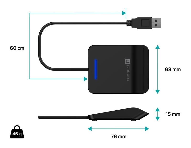 CONNECT IT USB čtečka eObčanek a čipových karet, černá