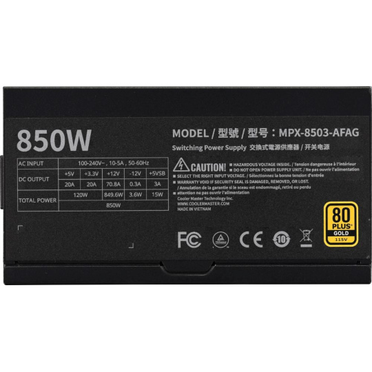 Cooler Master zdroj 850W MWE Gold 3, 120mm, 80+ Gold, Plně modulární, ATX 3.1