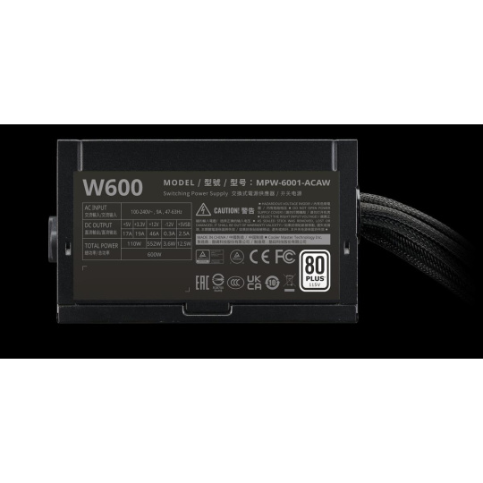 Cooler Master zdroj Elite NEX 600W 230V, 120mm, 80+ White, Mesh (opletené kabely)