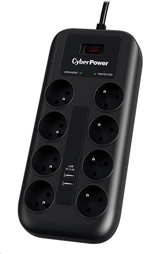 CyberPower Surge Buster™ 8 zásuvek, 2xUSB, 1.8m, New